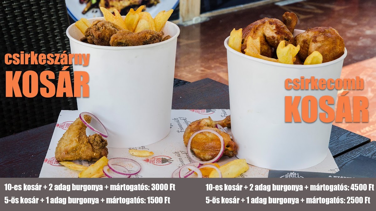 In addition to these options, the Kirántott Hús (breaded meat) and Sült Oldalas Amerikai Káposztasaláta (roasted ribs with American-style coleslaw) offer delicious, hearty meals, while the 5 Ös Csorkeszárny Kosár (5-piece chicken wing basket) is perfect for those who enjoy a crunchy, flavorful snack. The Császárszallona (emperor's bacon) brings a crispy, smoky touch to the menu, adding a unique flavor to any dish.